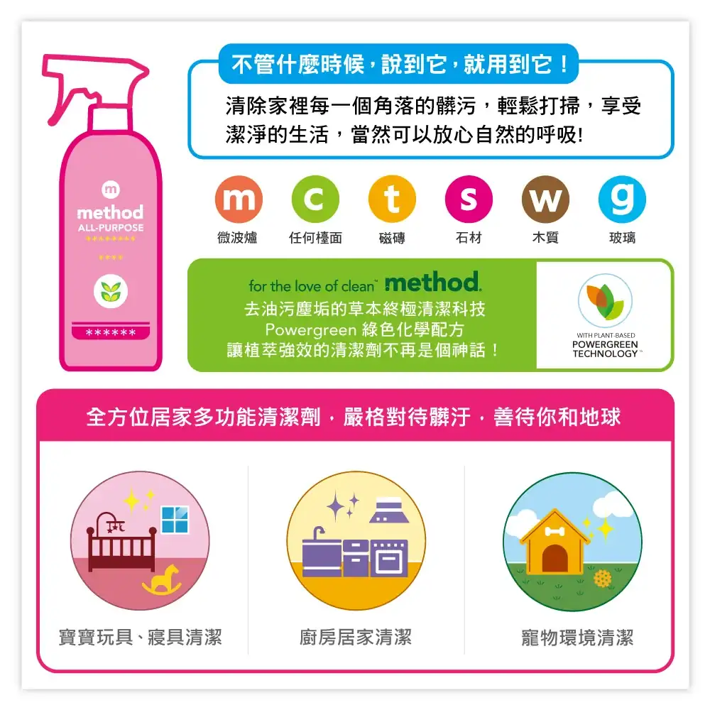 輕鬆打掃,享受潔淨的生活,當然可以放心自然的呼吸!面對手握最先進綠色化學的綠色潔淨科技的你,油膩與髒污根本沒有任何生存的機會,每次一噴,透過無毒的喜悅及禮讚,帶來草本萃取可生物分 解的清潔力,它的清潔力來自玉米與椰子,自然分 解髒污,每次的清潔只留下清新的香氛和亮潔,不必擔心任何殘留! 可以安心的使用在家裡絕大部分的表面-微波爐、烤箱、冰箱、磁磚、大理石、木質、金屬等表面。