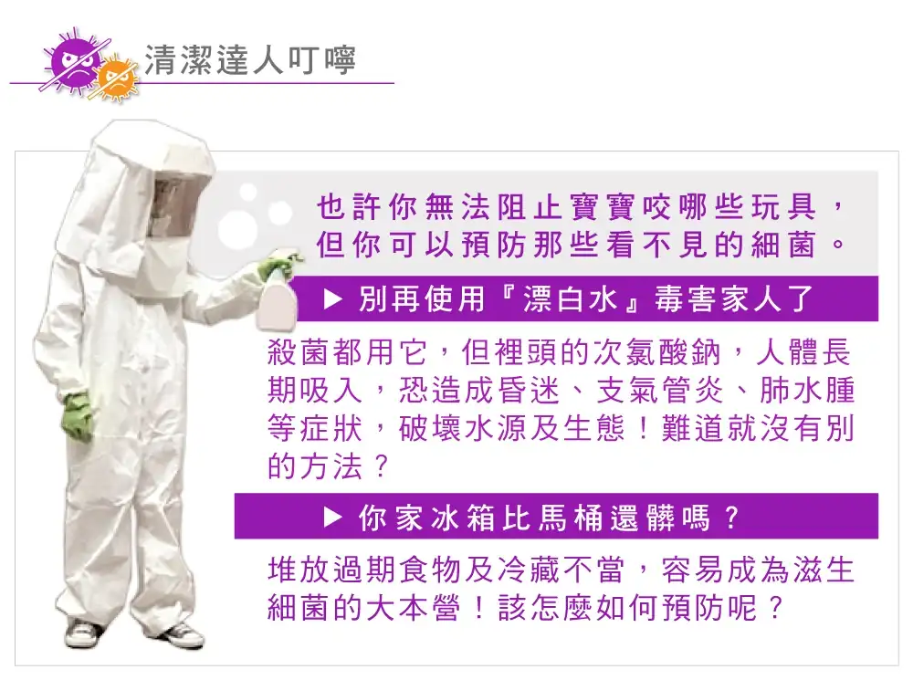 讓抹布、砧板、流理台、餐具類、海綿菜瓜布、冰箱內槽、電磁爐、水龍頭、垃圾蓋髒污、鞋櫃、玩具、電風扇、踩腳墊、空調,冷氣濾網、遙控器、遊戲地墊、衛浴、水管凹槽、蓮蓬頭手把、辦公室、電梯按鈕、電腦、滑鼠、桌面…,不再是細菌的溫床~,然而,儘管是如此強的清潔力,卻能溫和不傷光滑無孔的表面 ! 這樣的驚訝有意思吧 ! 當然,除非你是細菌囉 !