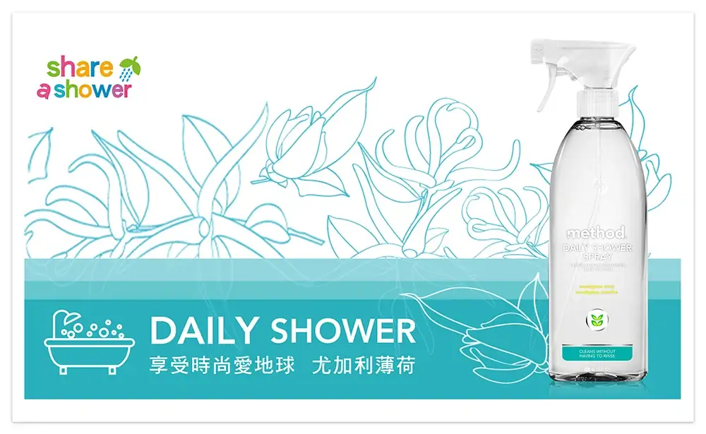 每天洗完澡後,順手拿起每日清潔劑,噴在容易形成皂垢與黴菌斑的地方,不必立即清洗,隔天洗澡的時候再順便用清水噴洗即可。