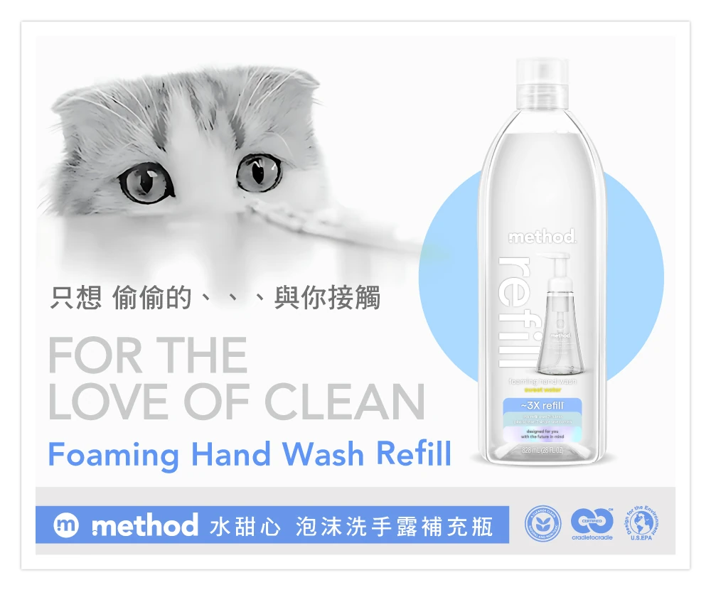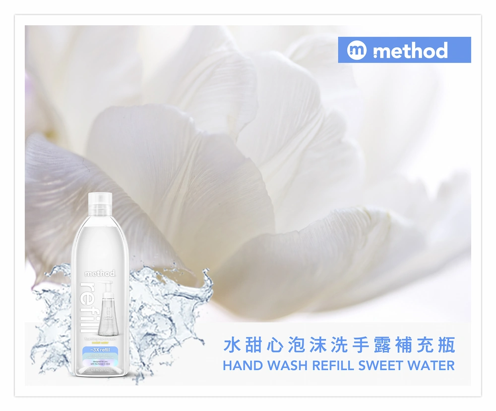 Method美則的補充瓶,解決您的困惱,方便好倒的開口設計,補充更便利。環保經濟補充瓶不佔廚櫃空間,更愛護地球,富含維他命E、保濕成份(蘆薈,維他命E及滋潤甘油),不含PARABENS類防腐劑、鄰苯二甲酸鹽,三氯沙Triclosan or EDTA乙二胺四乙酸等dirty成分,可生物分解,溫和滋潤與清潔皆顧慮到,淡雅的清香讓您身心愉悅,每天都想更愛自己一點。