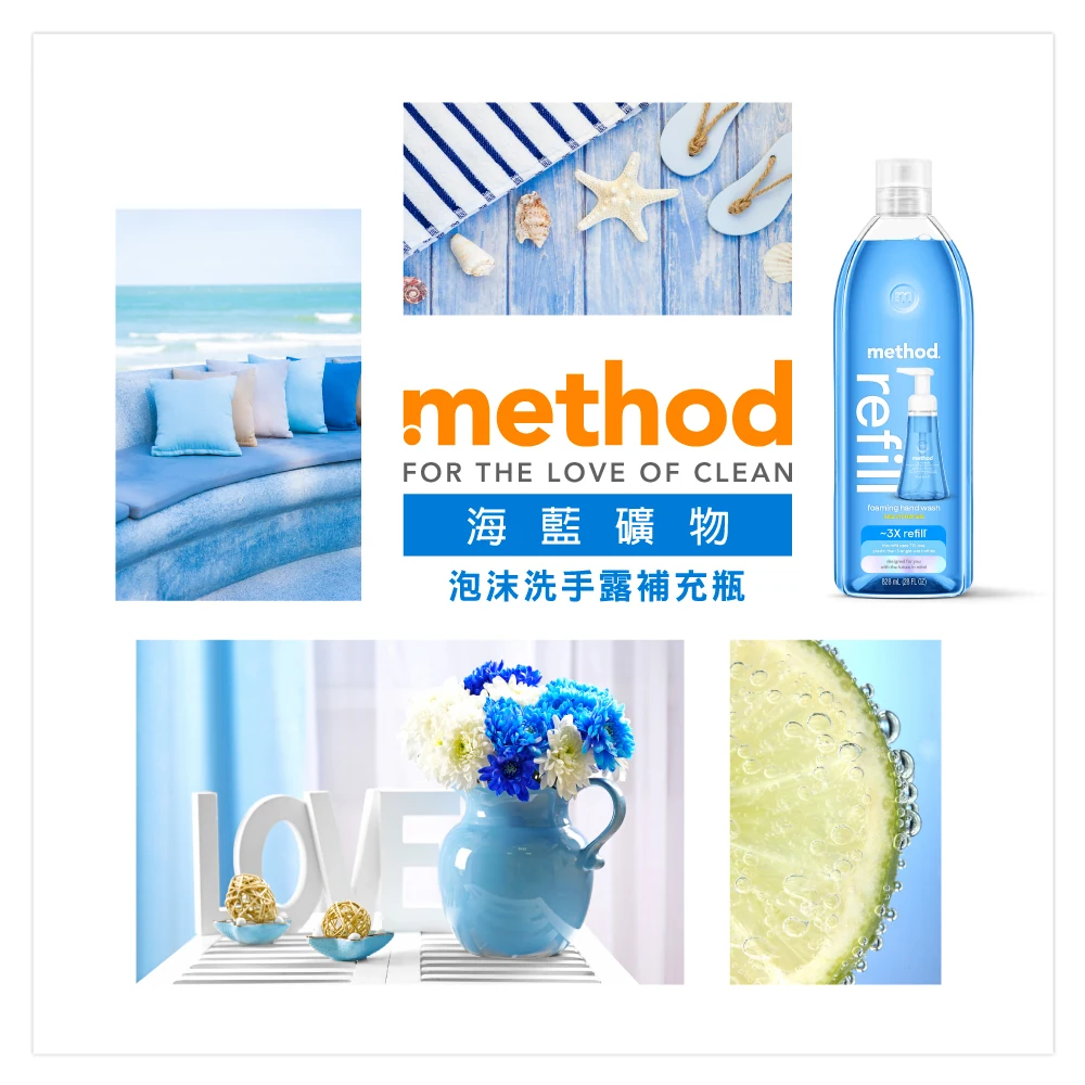 Method美則的補充瓶,解決您的困惱,方便好倒的開口設計,補充更便利。環保經濟補充瓶不佔廚櫃空間,更愛護地球,富含維他命E、保濕成份(蘆薈,維他命E及滋潤甘油),不含PARABENS類防腐劑、鄰苯二甲酸鹽,三氯沙Triclosan or EDTA乙二胺四乙酸等dirty成分,可生物分解,溫和滋潤與清潔皆顧慮到,淡雅的清香讓您身心愉悅,每天都想更愛自己一點。