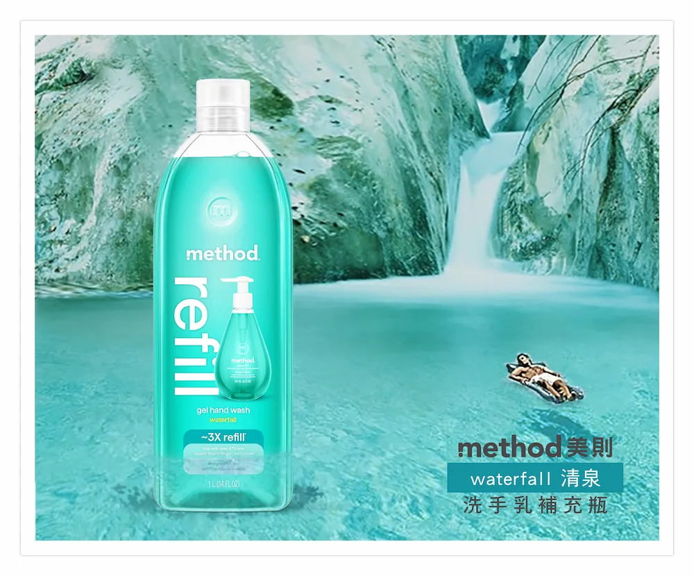 Method美則的補充瓶,解決您的困惱,方便好倒的開口設計,補充更便利。環保經濟大包裝不佔廚櫃空間,更愛護地球,富含維他命E、保濕成份(蘆薈,維他命E及滋潤甘油),可生物分解的成份,溫和滋潤與清潔皆顧慮到,淡雅的清香讓您身心愉悅、每天都想更愛自己一點。