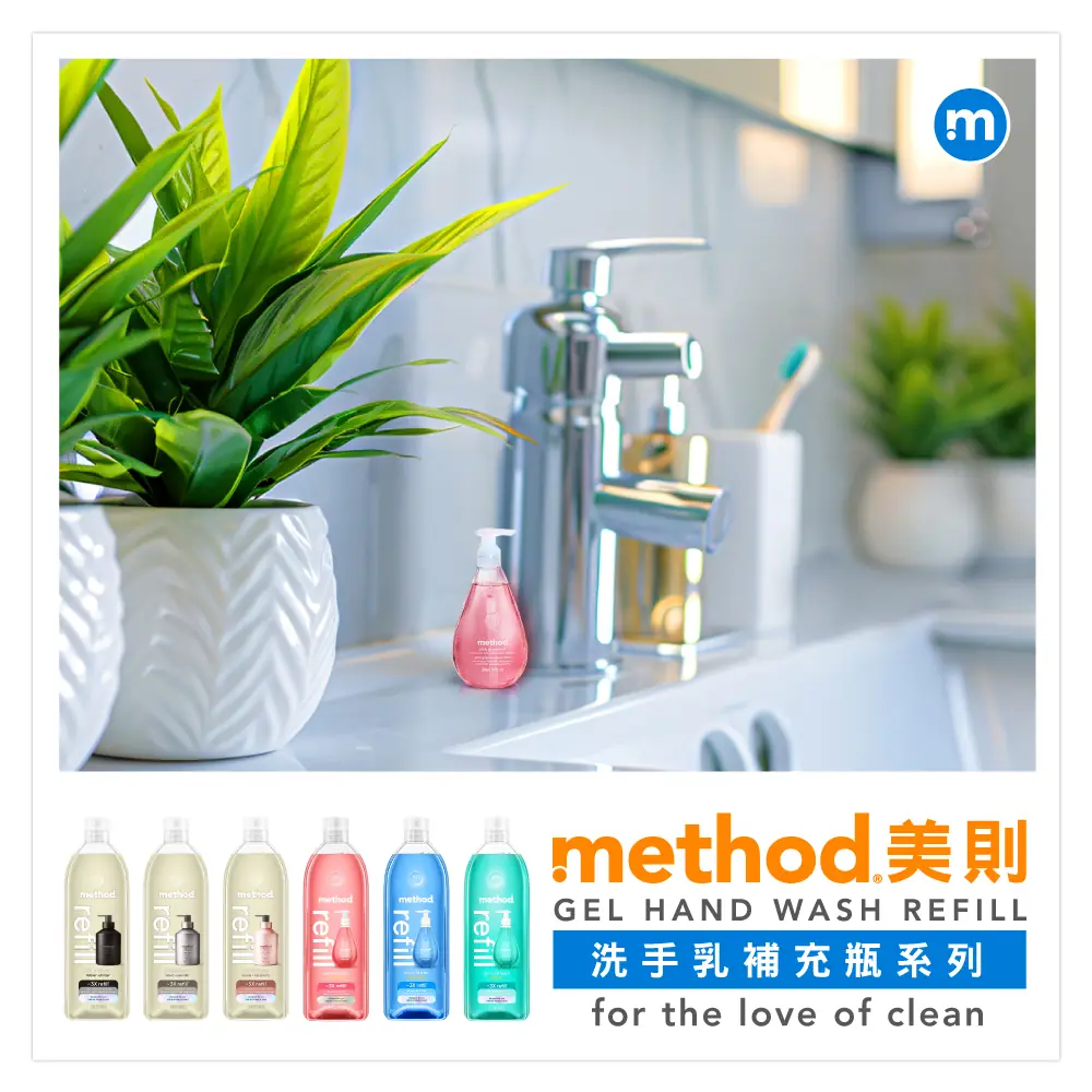 Method美則的補充瓶,解決您的困惱,方便好倒的開口設計,補充更便利。環保經濟大包裝不佔廚櫃空間,更愛護地球,富含維他命E、保濕成份(蘆薈,維他命E及滋潤甘油),可生物分解的成份,溫和滋潤與清潔皆顧慮到,淡雅的清香讓您身心愉悅、每天都想更愛自己一點。